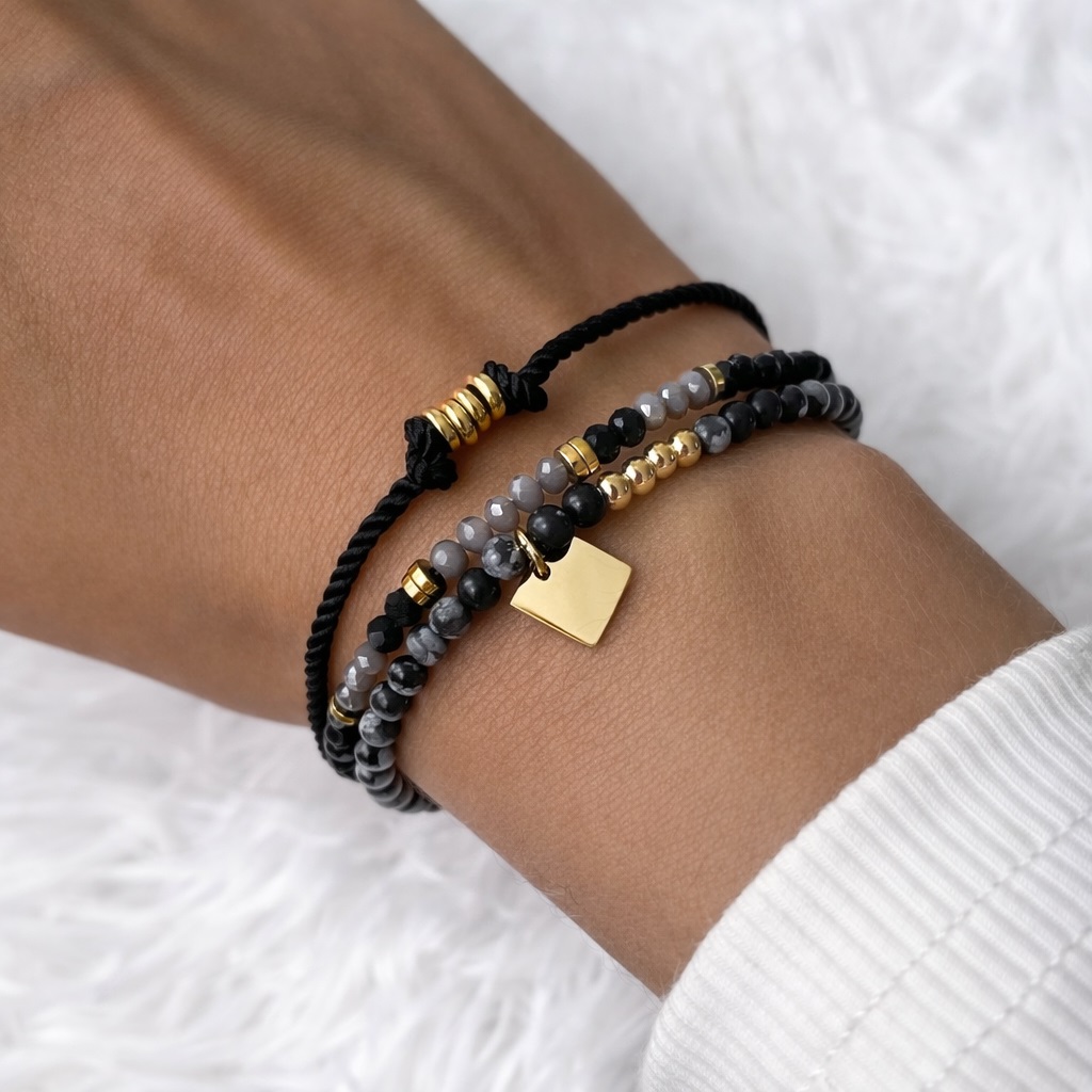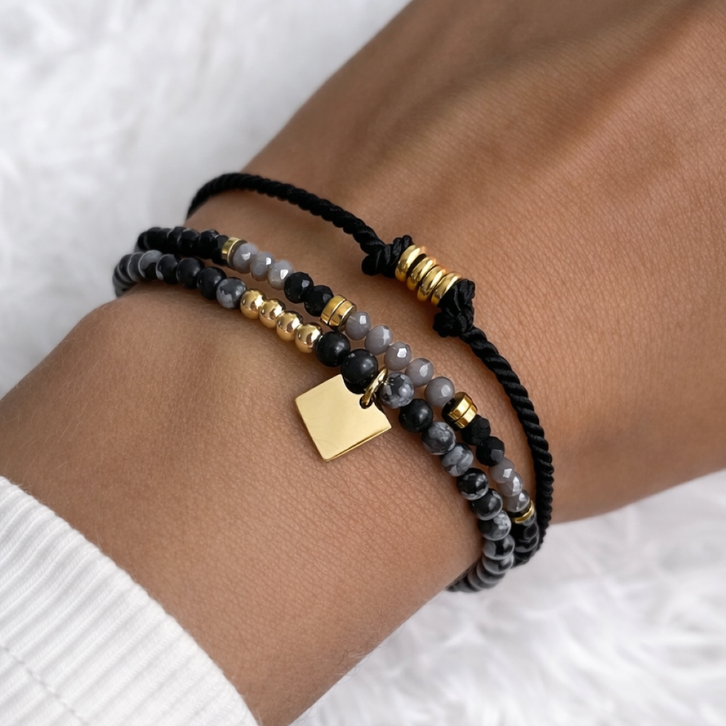 Bransoletka z naturalnym obsydianem śnieżnym to połączenie kamieni o wyrazistym charakterze z lekką, nowoczesną formą. Kontrast czerni i jasnych inkluzji obsydianu nadaje biżuterii głębi, a czarne koraliki ze spinelu podkreślają jej elegancki i spójny wygląd. Regulowane zapięcie pozwala na wygodne dopasowanie do nadgarstka.