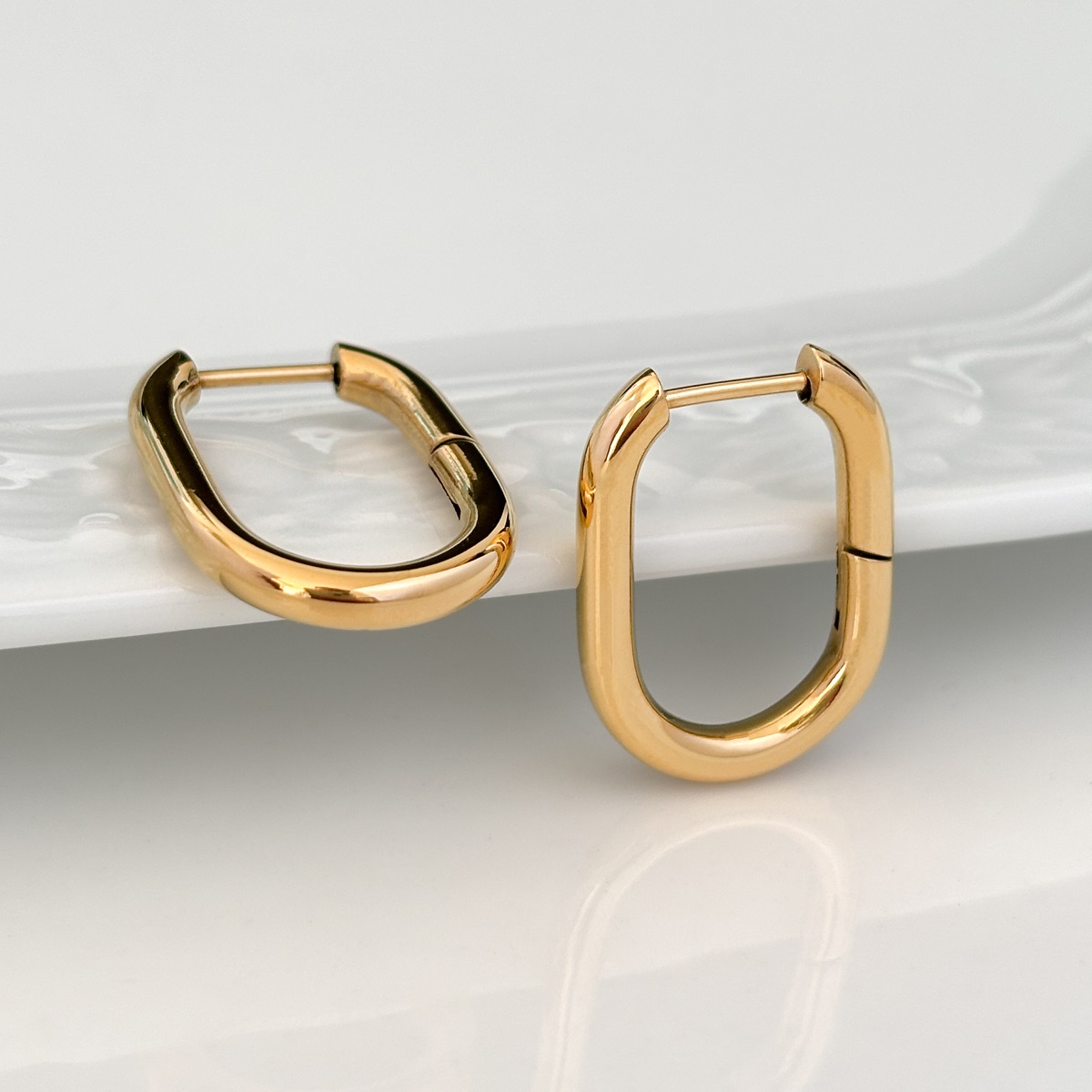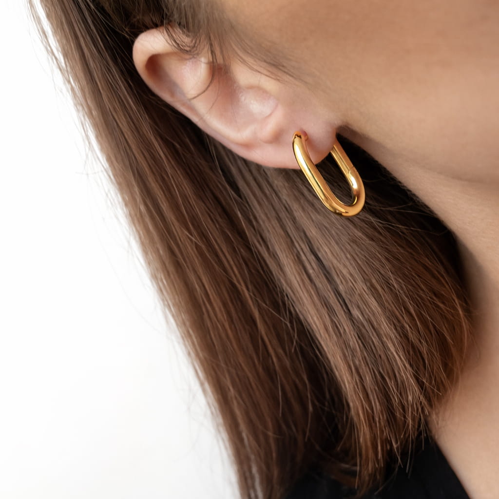 Kolczyki o nowoczesnym, owalnym kształcie to ponadczasowy dodatek, który subtelnie podkreśla rysy twarzy i dodaje eleganckiego blasku. Klasyczny odcień złota połączony z designerską formą sprawia, że to biżuteria, która z łatwością odnajdzie się w każdej garderobie. Idealne jako prezent lub świadomy wybór dla samej siebie.