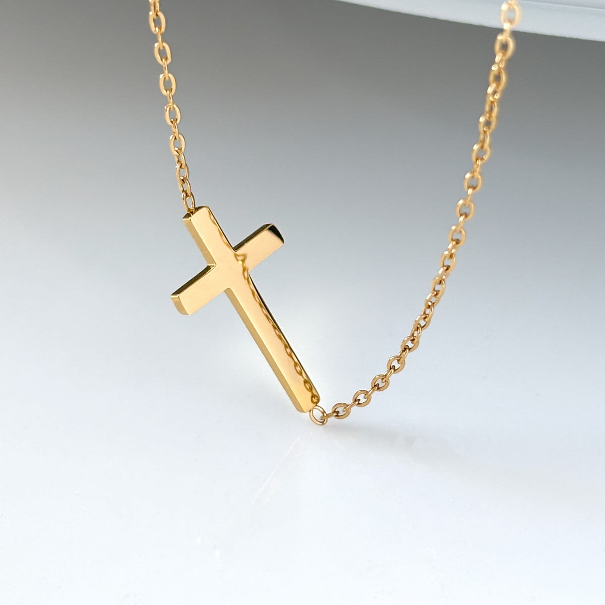 Elegancki naszyjnik z poziomym krzyżykiem to subtelny akcent, który podkreśla styl i dodaje delikatnego blasku każdej stylizacji. Wykonany z wysokiej jakości stali chirurgicznej i pozłacany 18-karatowym złotem, łączy minimalistyczny design z trwałością i komfortem noszenia.