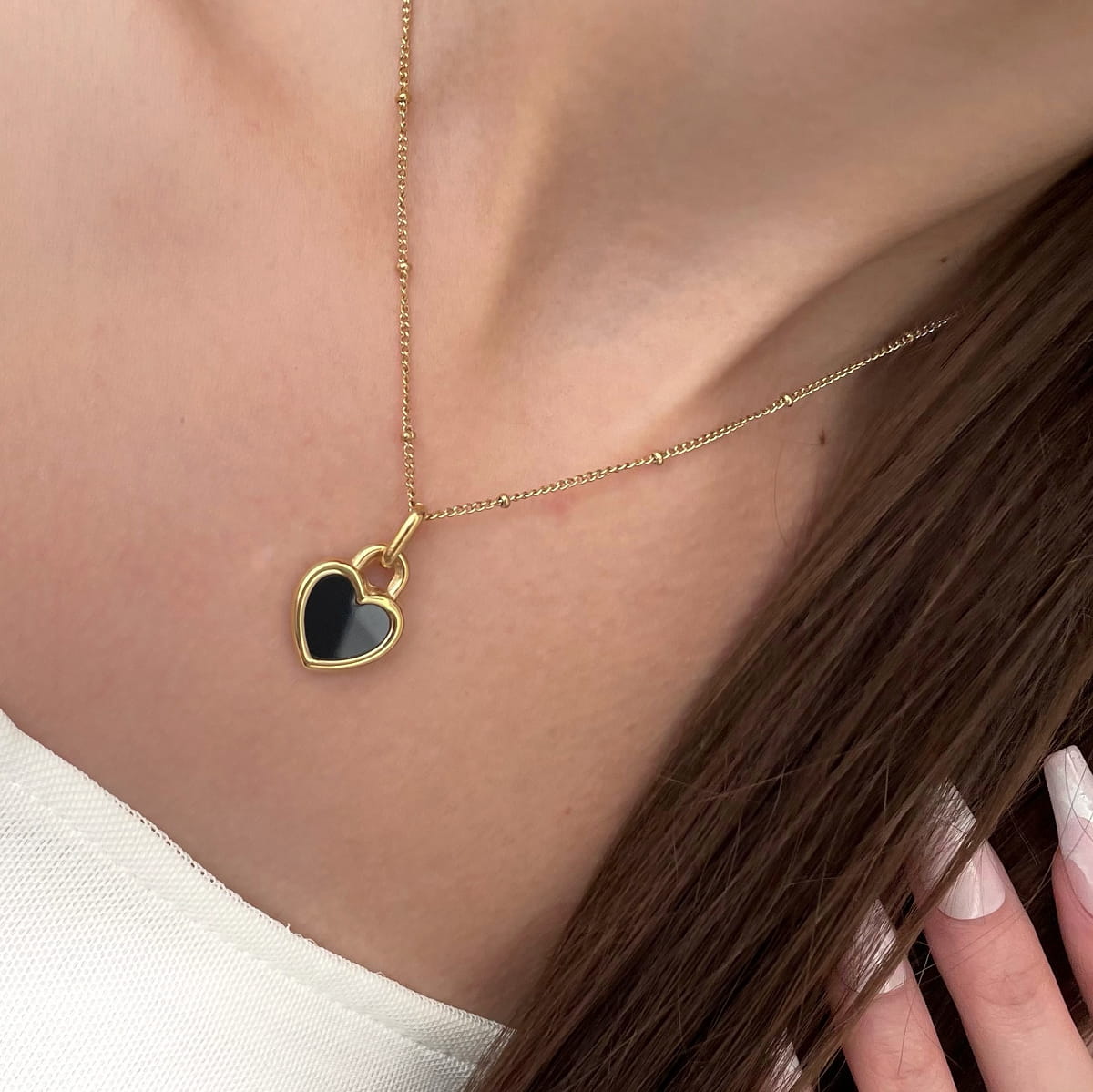 Elegancki, ponadczasowy naszyjnik, który subtelnie podkreśla dekolt i pozwala dopasować biżuterię do nastroju oraz stylizacji dzięki dwustronnej zawieszce.